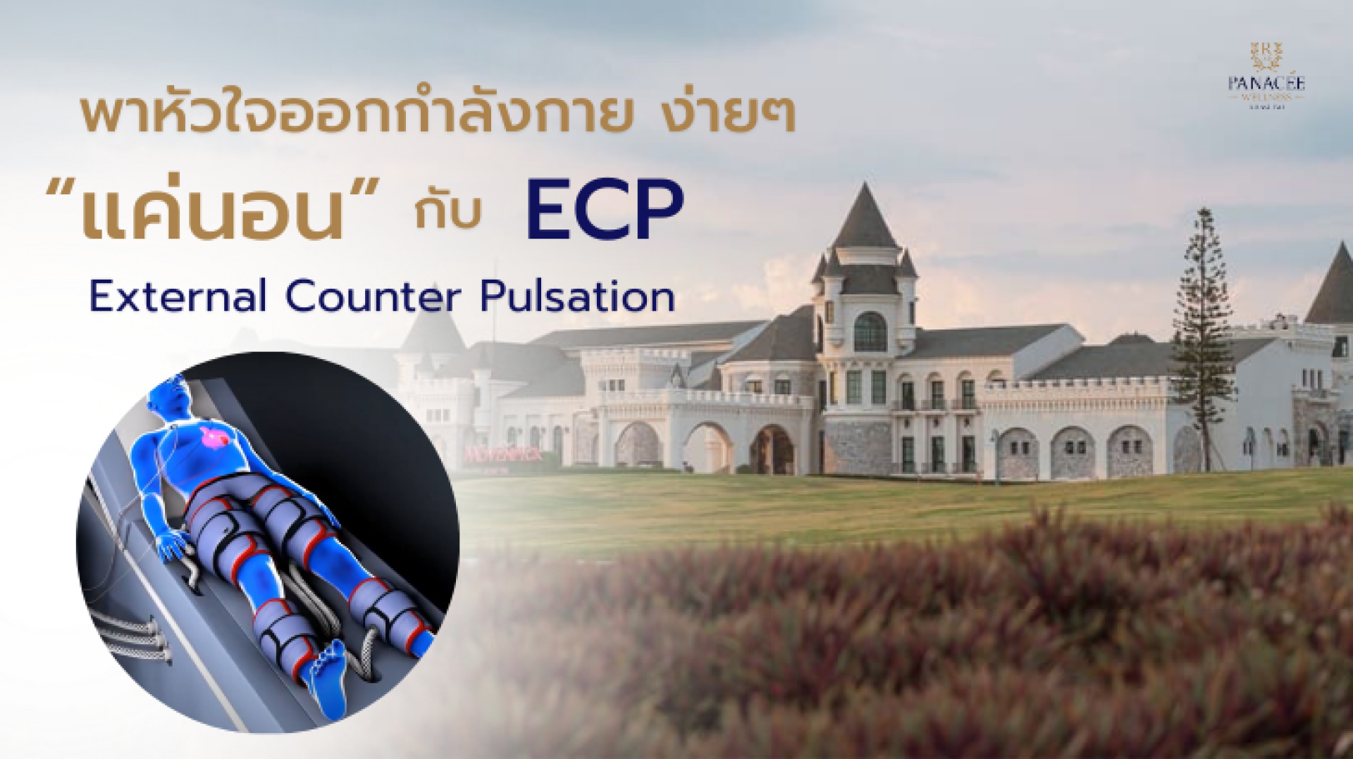 ECP หรือ External Counterpulsation Therapy คือ เครื่องนวดการกระตุ้นการทำงานของหัวใจ ที่ผ่านการรับรองมาตรฐาน FDA ของอเมริกา โดยไม่ต้องผ่าตัด สามารถช่วยรักษาและฟื้นฟูปัญหาหลอดเลือดที่อักเสบและอุดตันที่ต้นเหตุ ช่วยเพิ่มการไหลเวียนของโลหิตคล้ายการออกกำลังกาย กระตุ้นการรับออกซิเจนและสารอาหารที่จำเป็นไปเลี้ยงส่วนต่าง ๆ ของร่างกาย ให้ร่างกายเกิดการซ่อมแซมตัวเองแบบธรรมชาติ (Natural Healing) ระหว่างที่รับบริการ ECP ร่างกายจะหลั่งสาร Nitric Oxide คล้าย ๆ กับขณะออกกำลังกายแบบ Cardio จึงช่วยให้หลอดเลือดขยายตัวได้ดีขึ้น